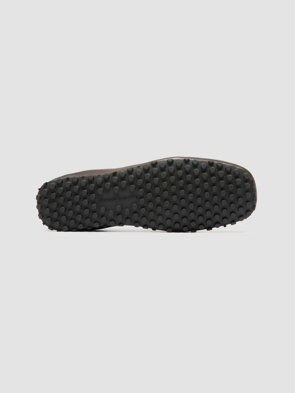 The Travis 001 loafers combine soft dark brown leather with a relaxed, lightweight silhouette. The rubber studded sole ensures grip, while the gathered heel with loop tab completes the laid-back design.