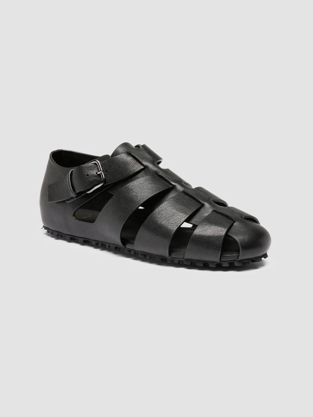 Crafted in black leather, the Yorgos 001 sandals combine a classic fisherman construction with a more structured, contemporary feel. The model features a handwoven upper with a side buckle closure, set on a rubber sole with textured grip. CODE:YORGOS/001 SOHO NERO