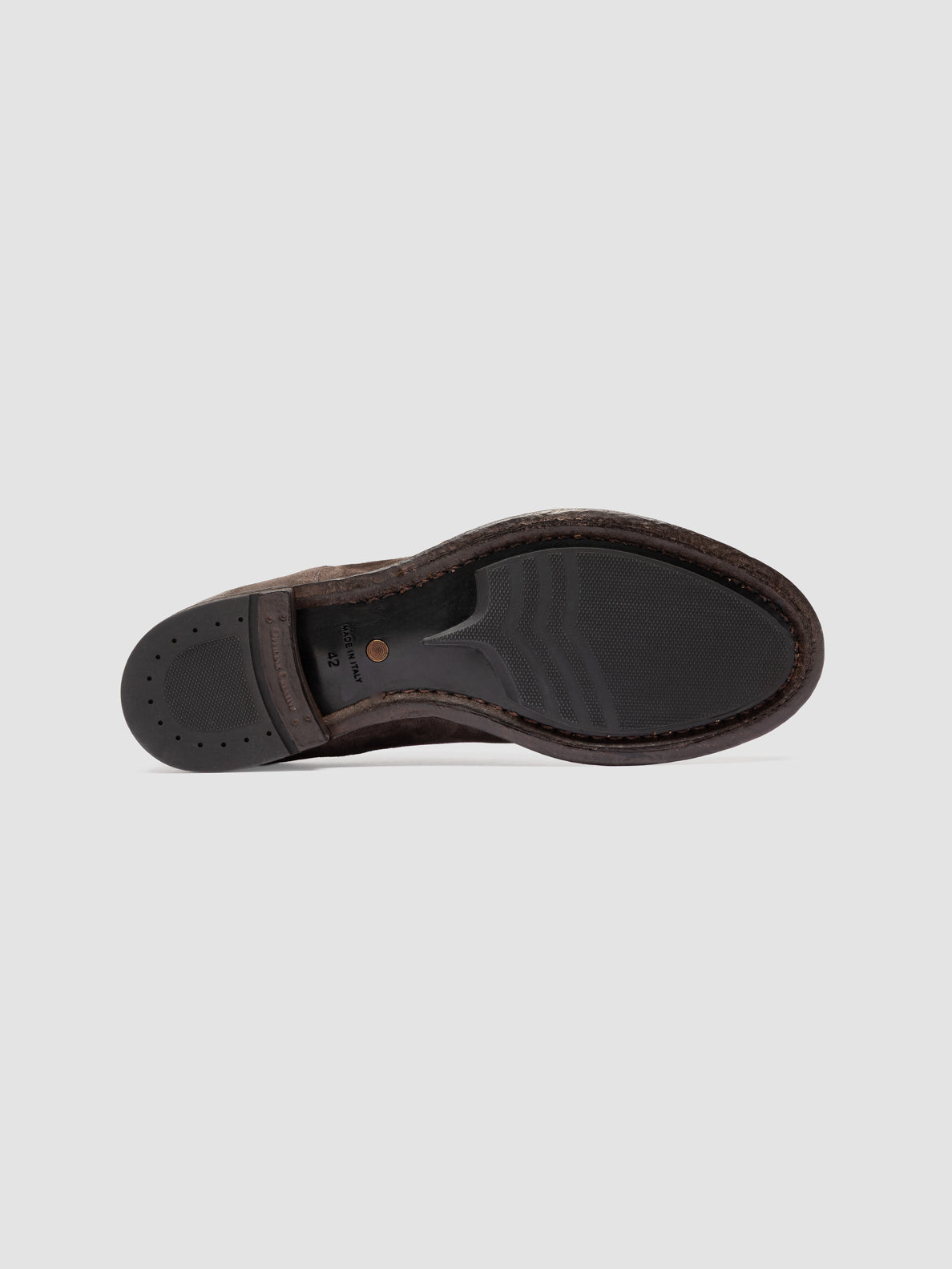 Our versatile Anatomia derby shoes are characterized by a timeless silhouette and impeccable craftsmanship. Made from soft airbrushed suede in shades of dark brown they feature an almond toe fine waxed laces signature grosgrain heel pull tab and a stacked sole with low heel and black rubber inserts.