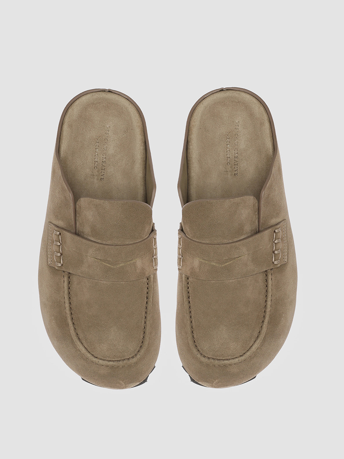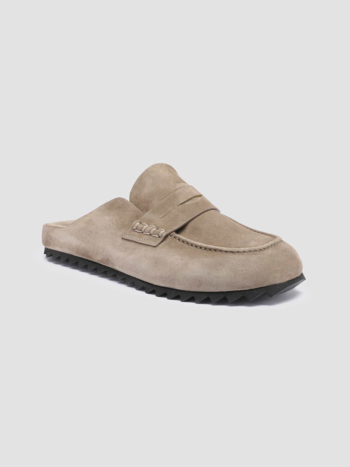 Revealing a classic yet laid back silhouette, our Pelagie mules are carefully handcrafted in Italy using soft premium suede. Their unique design features a rounded loafer-style toe with front strap and a non-slip tread rubber sole.