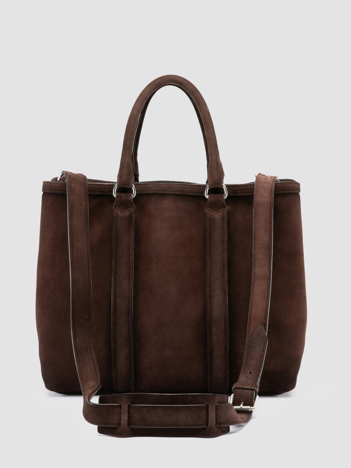 The Quentin 021 briefcase is expertly handcrafted in Italy from premium airbrushed brown suede. It features two top handles, a detachable shoulder strap and a convenient front zip pocket, enhanced with silver-tone hardware.